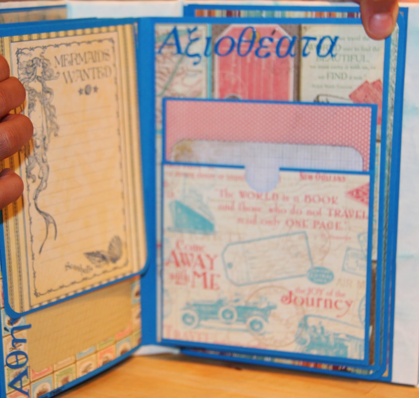 The left page has a small waterfall to place pics of Mykonos. The page on the right is for our tour to Delos. |